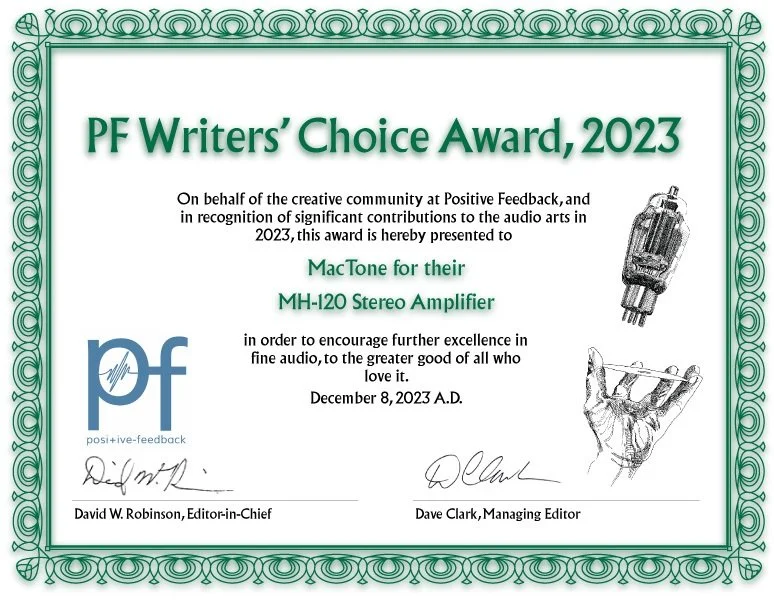 “I try to be a calm person most of the time, but the Mactone MH-120 and XX-7000 have exposed me to a new level of tube amplifier performance, one that makes me wonder if I should just stop right here. Highly recommended, and an Editor’s Choice Award is mandatory.”